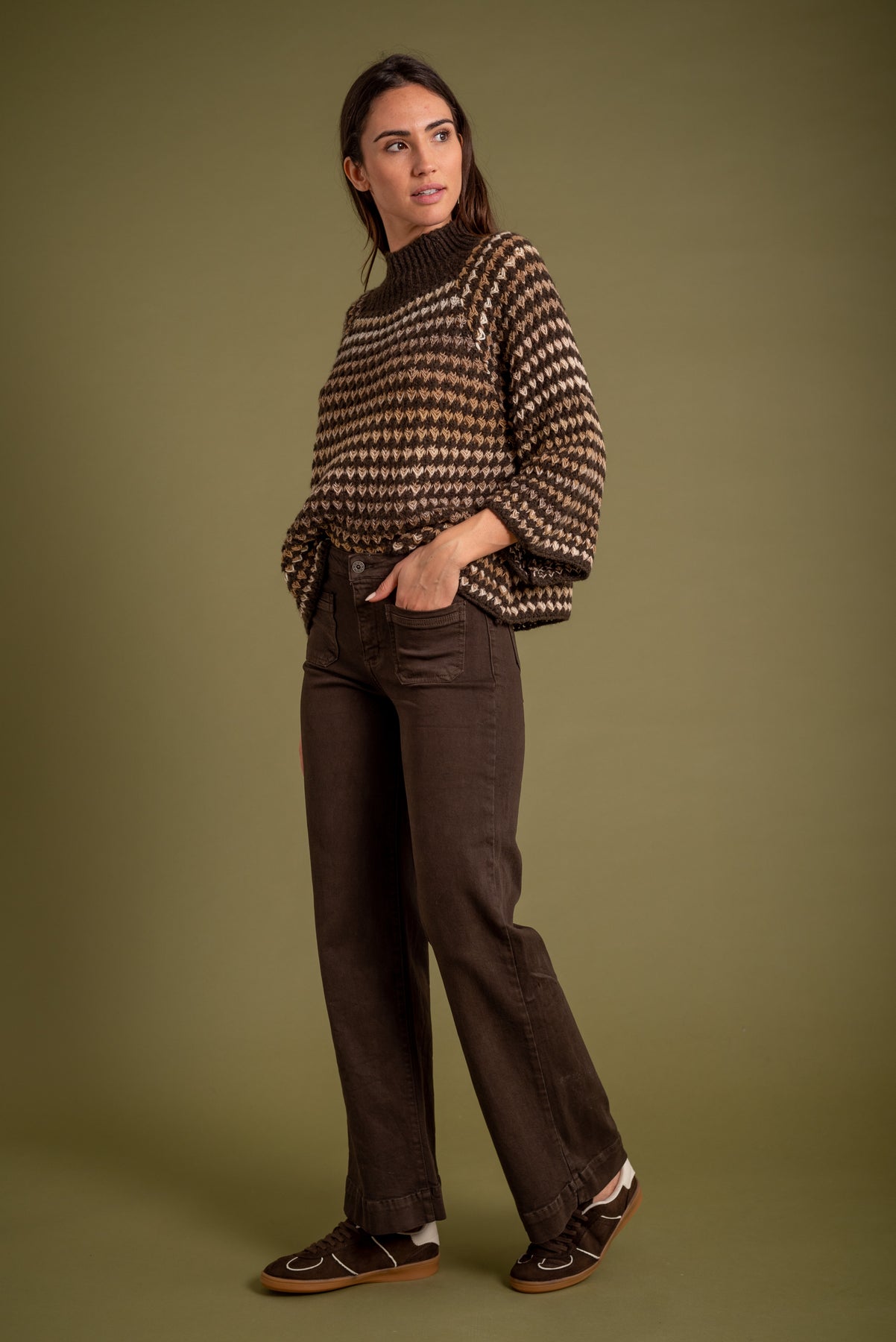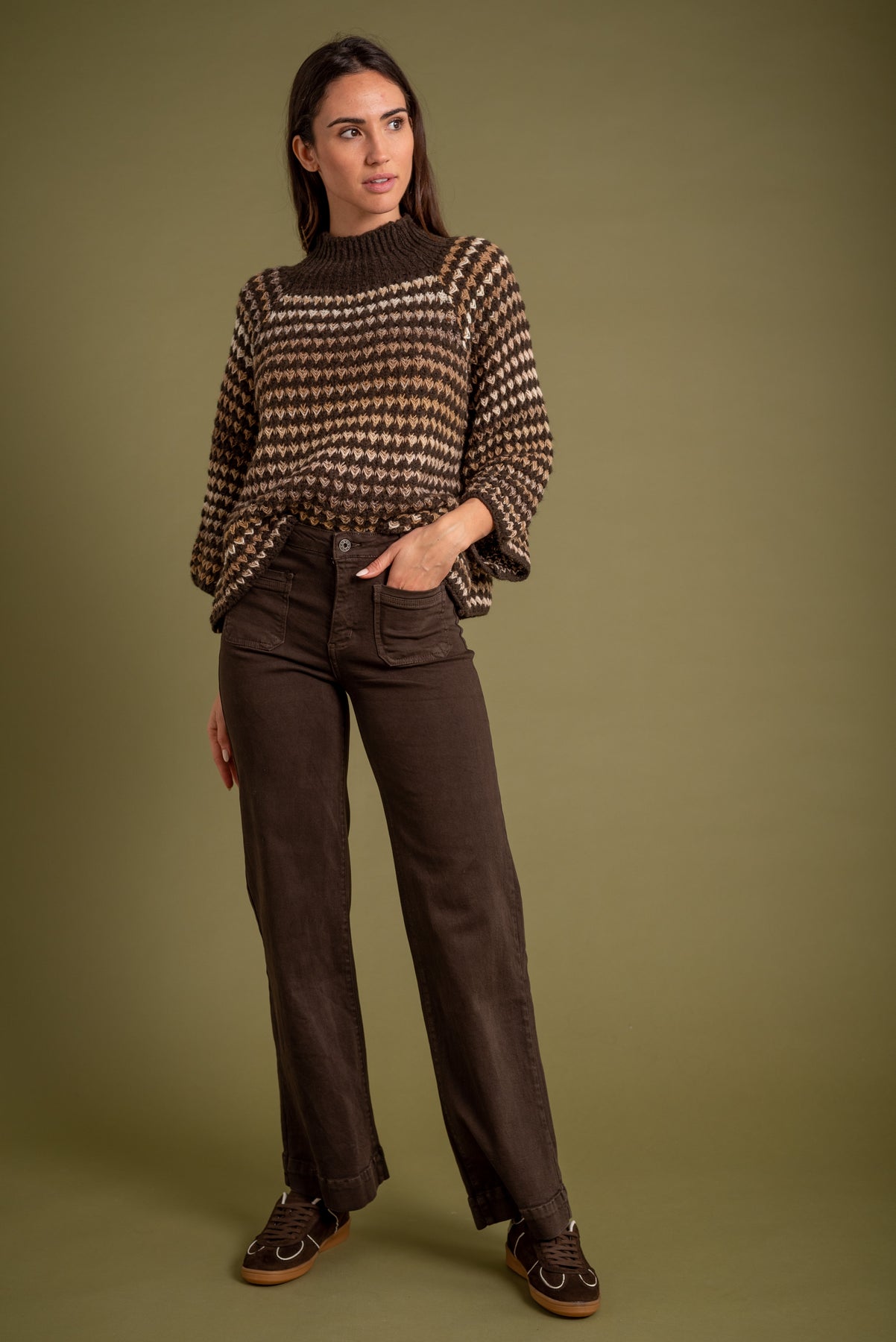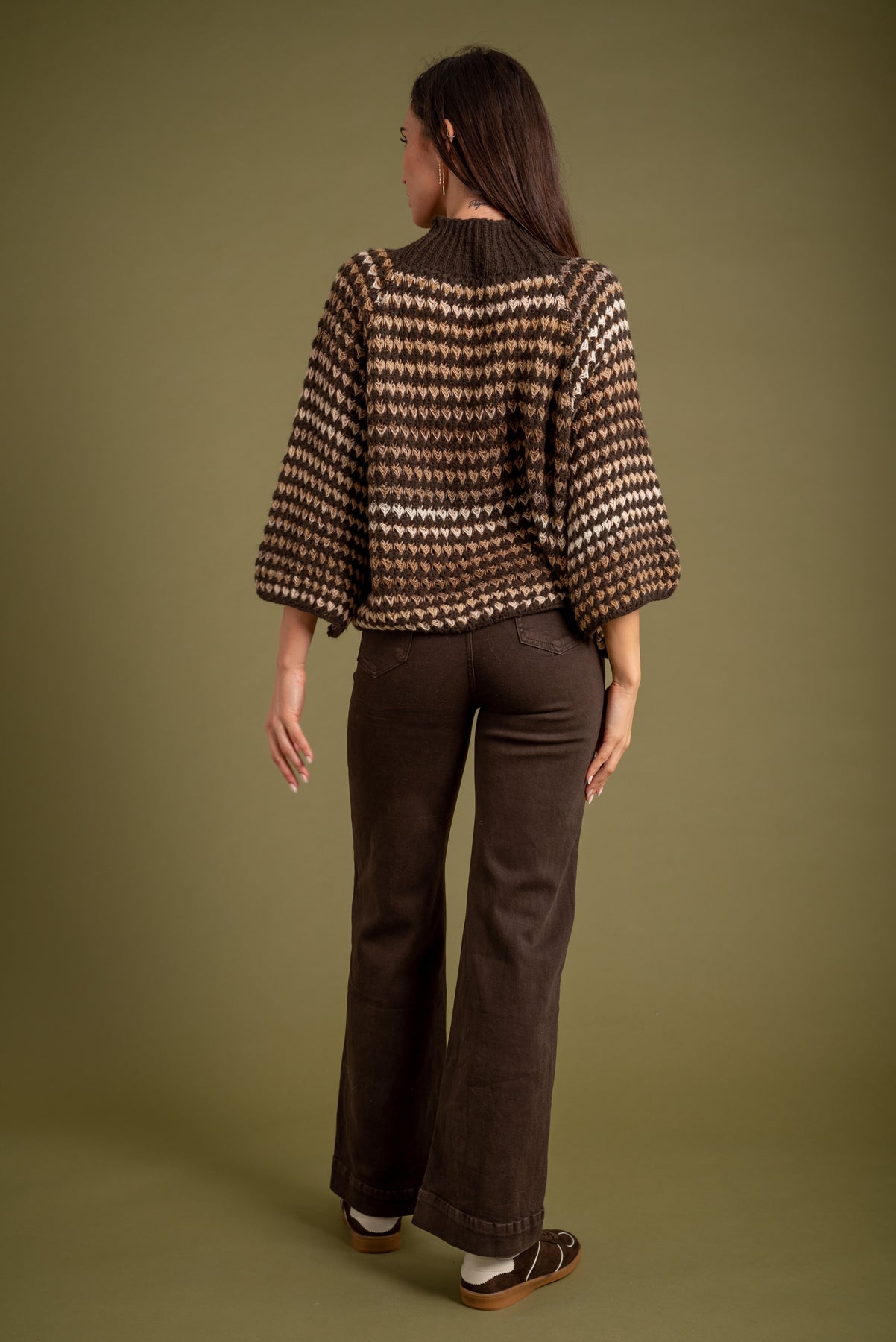 Jersey cuello chimenea, manga francesa acampanada. Super favorecedor.