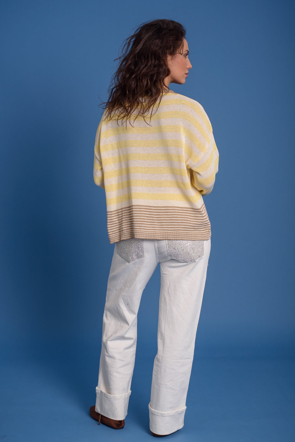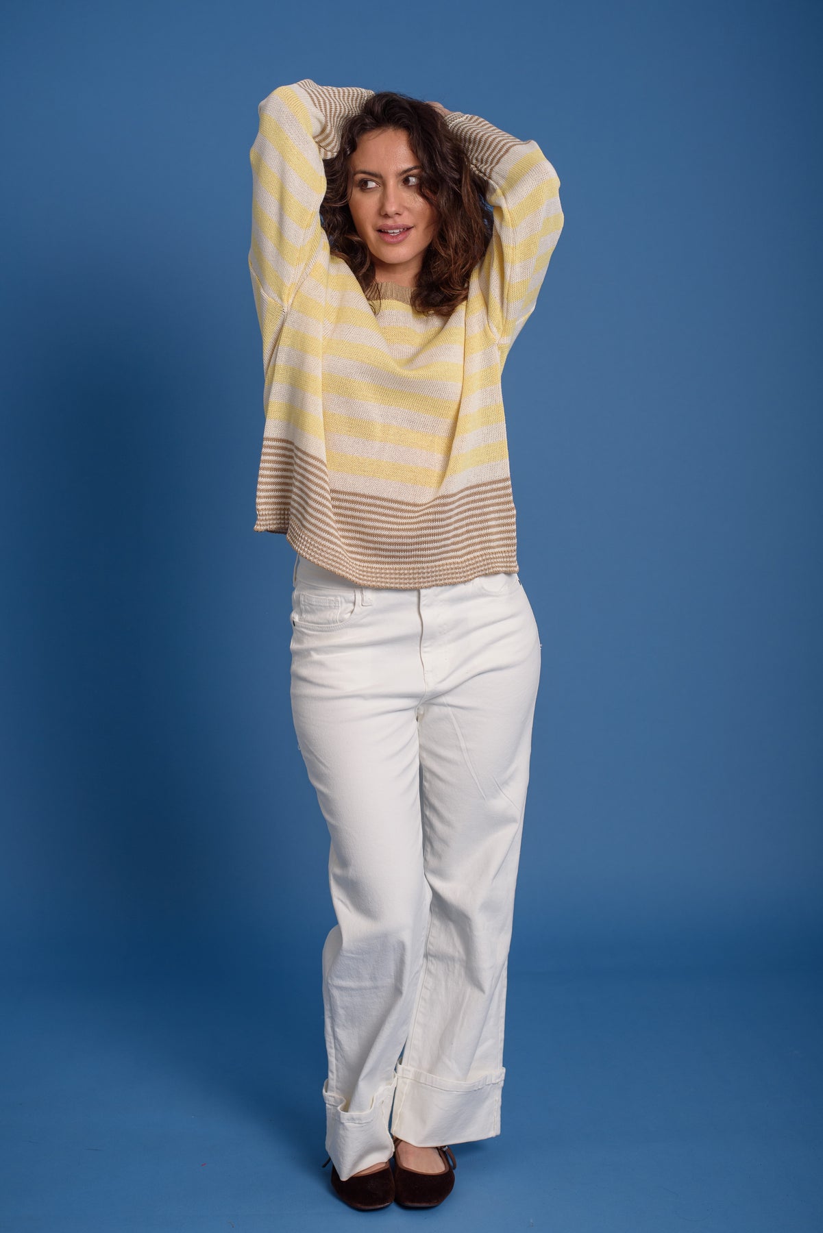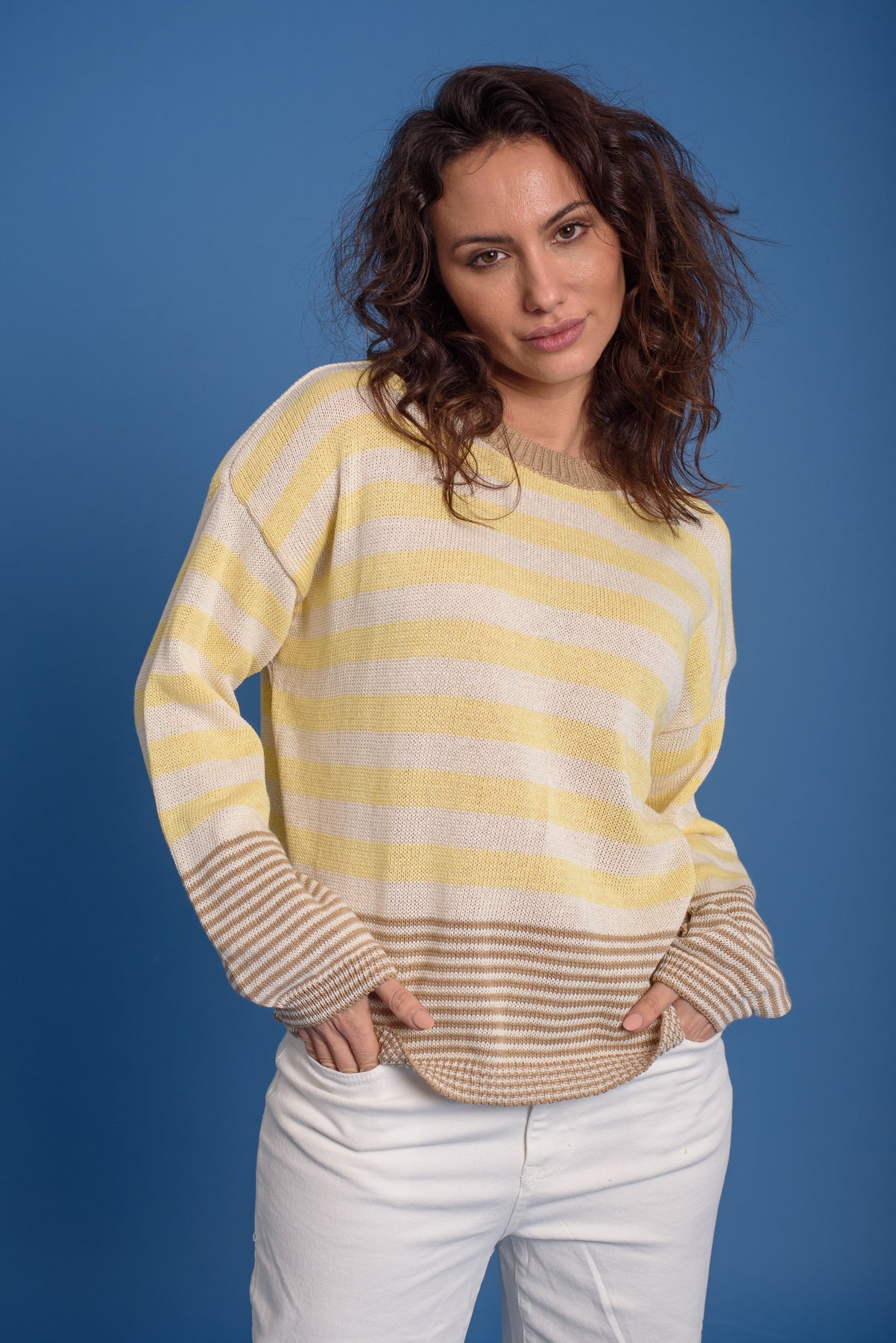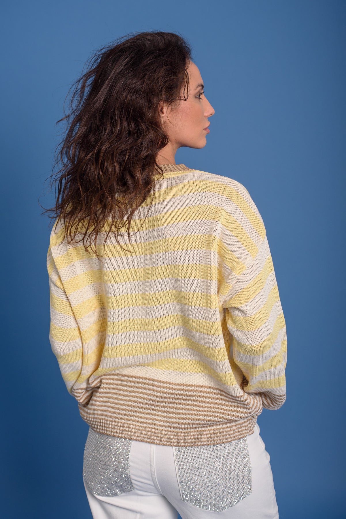 Jersey punto de algodón. Estampado a rayas. Puños y bajo a contraste.