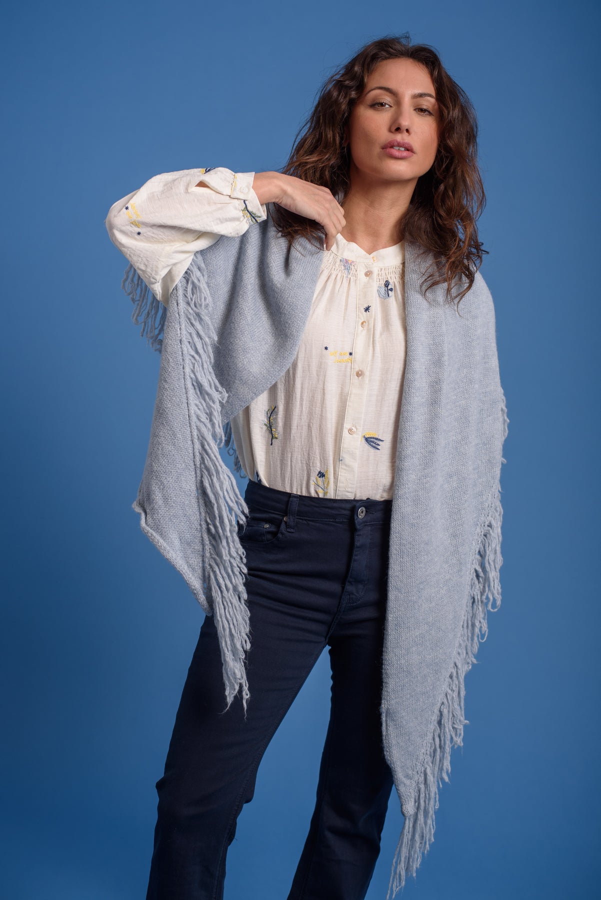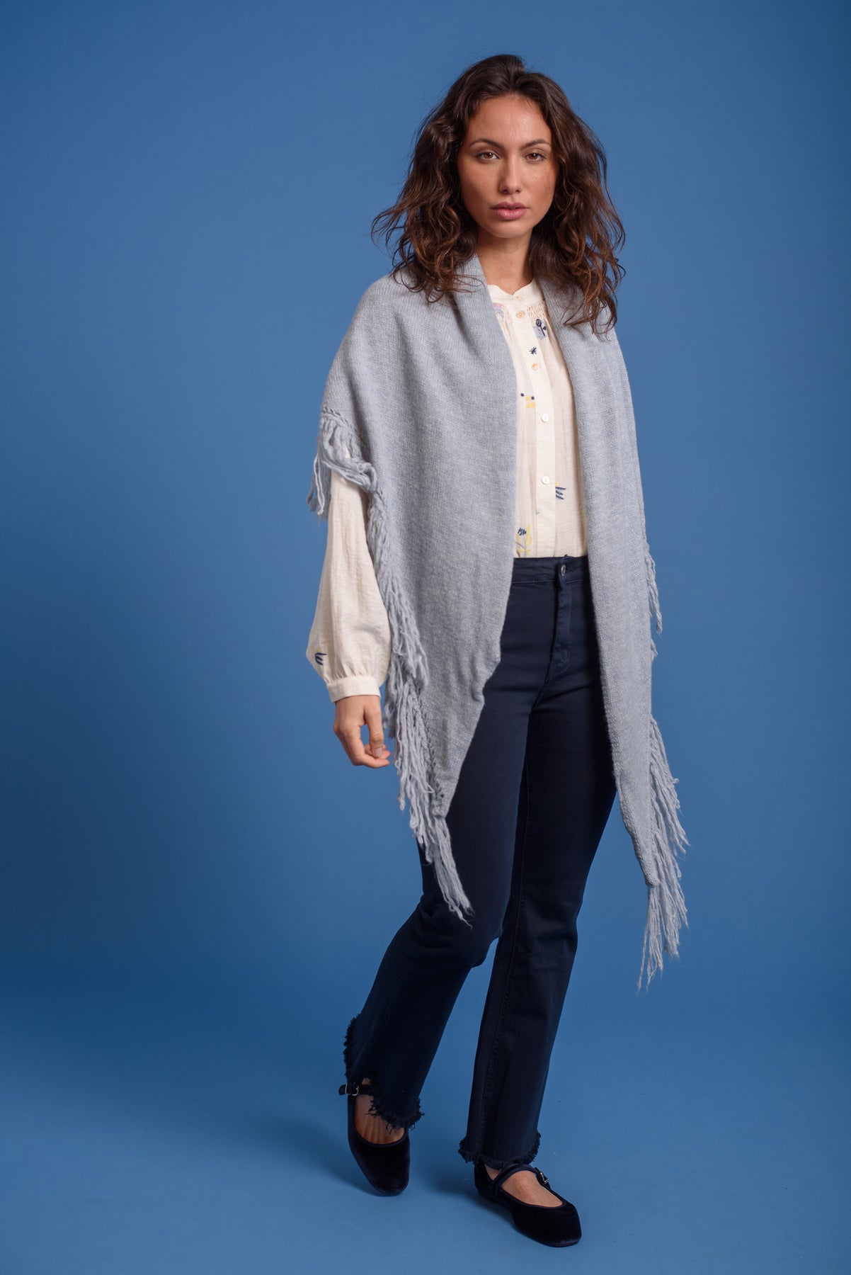Poncho / Capa triangular. Remate con flecos.