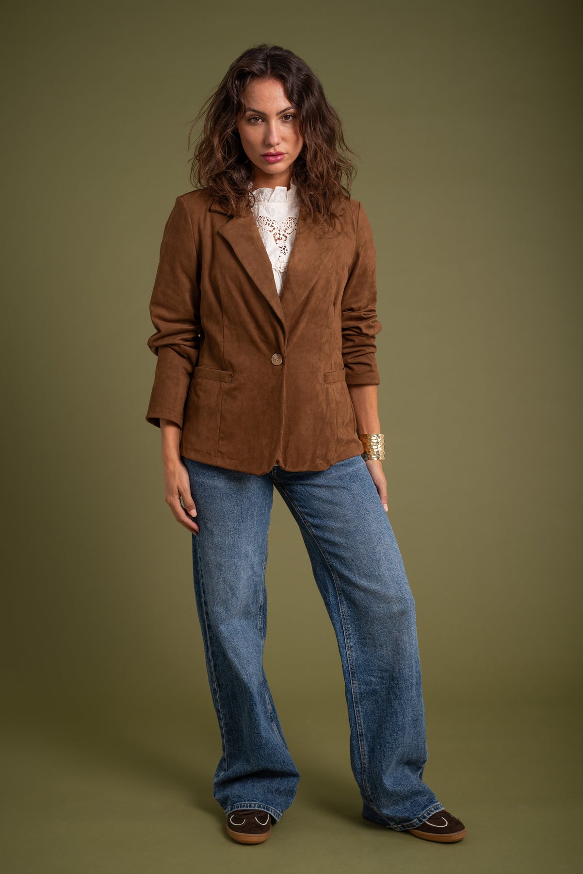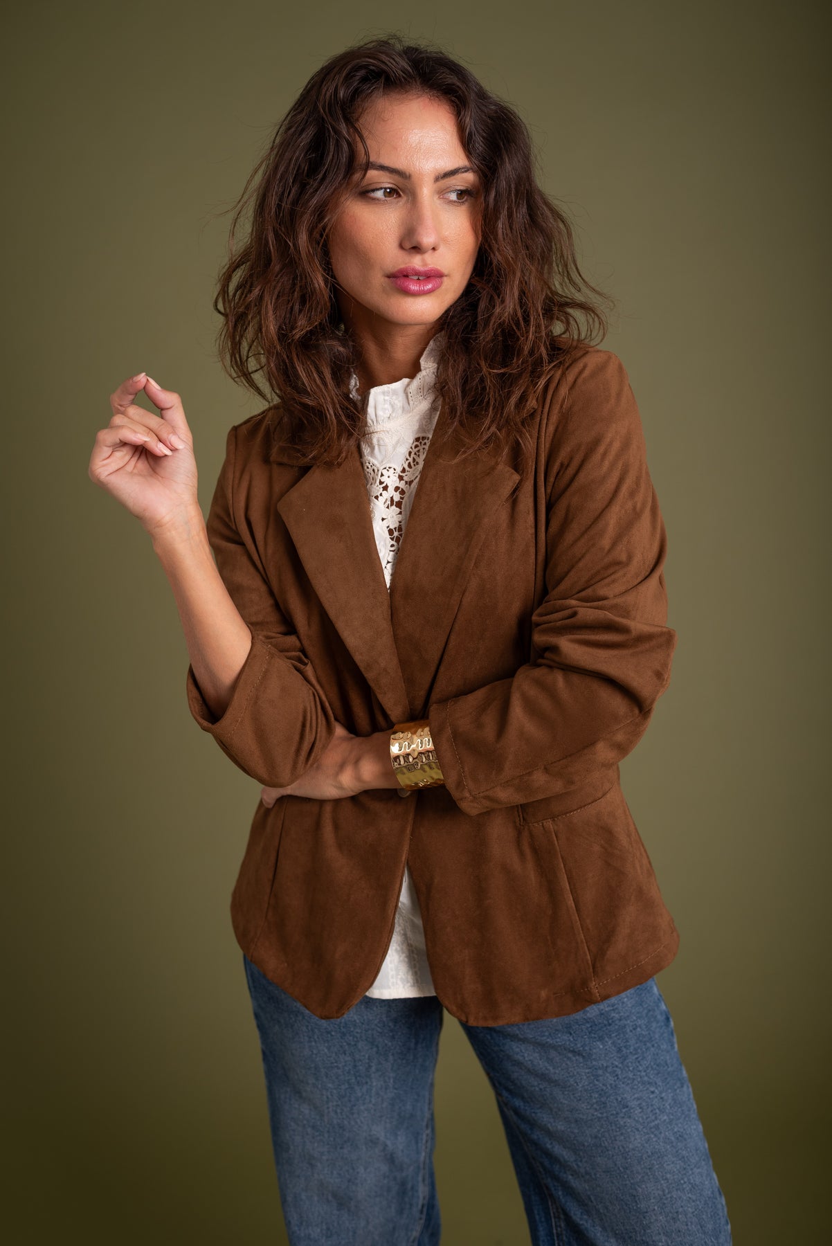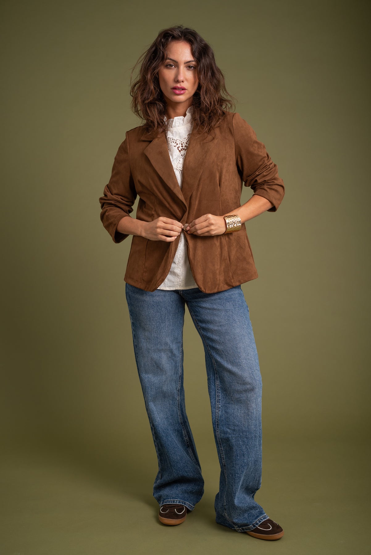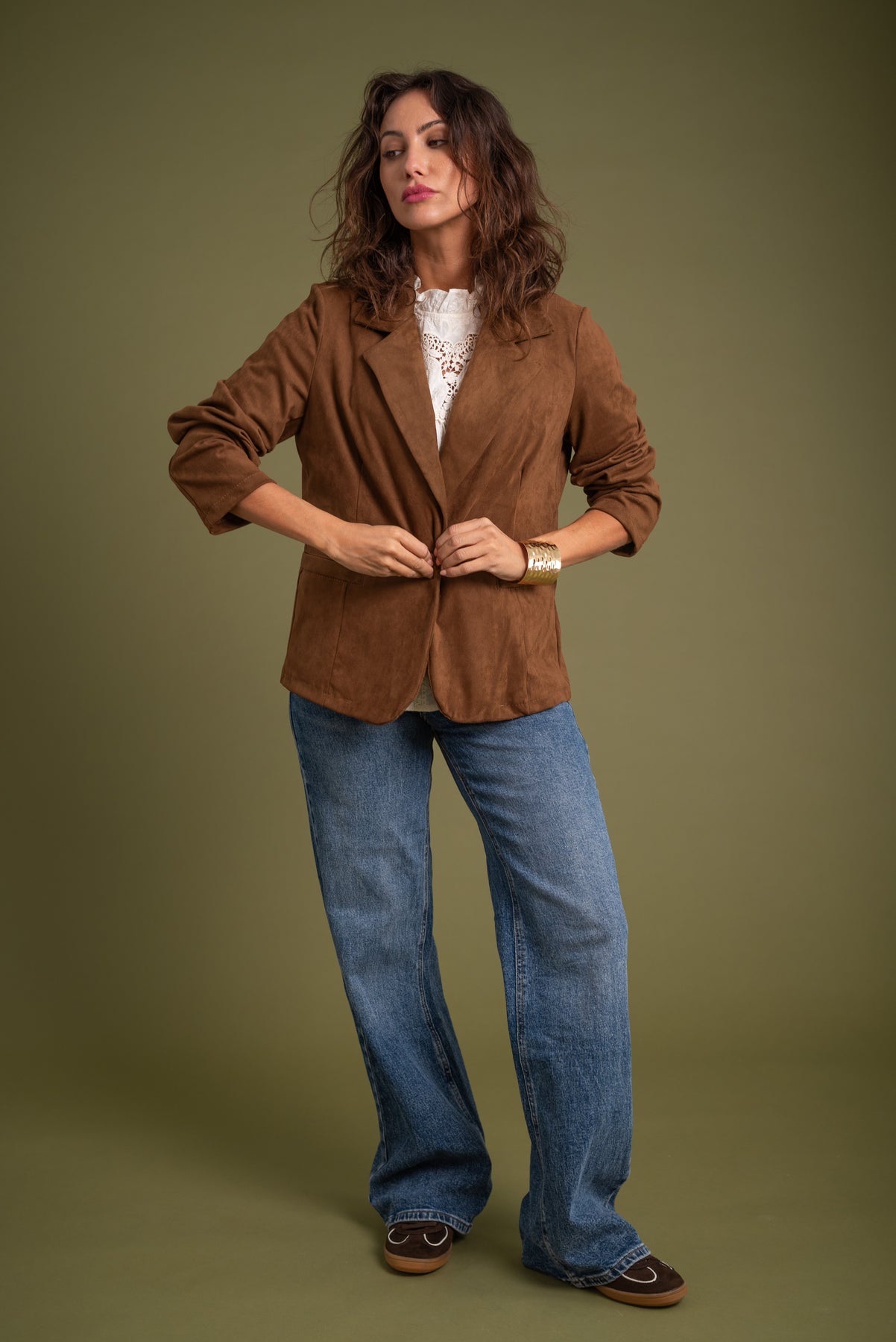Americana clásica. Solapa sastre. Cierre botón. Tejido tipo antelina. Un must have de esta temporada. Super combinable.