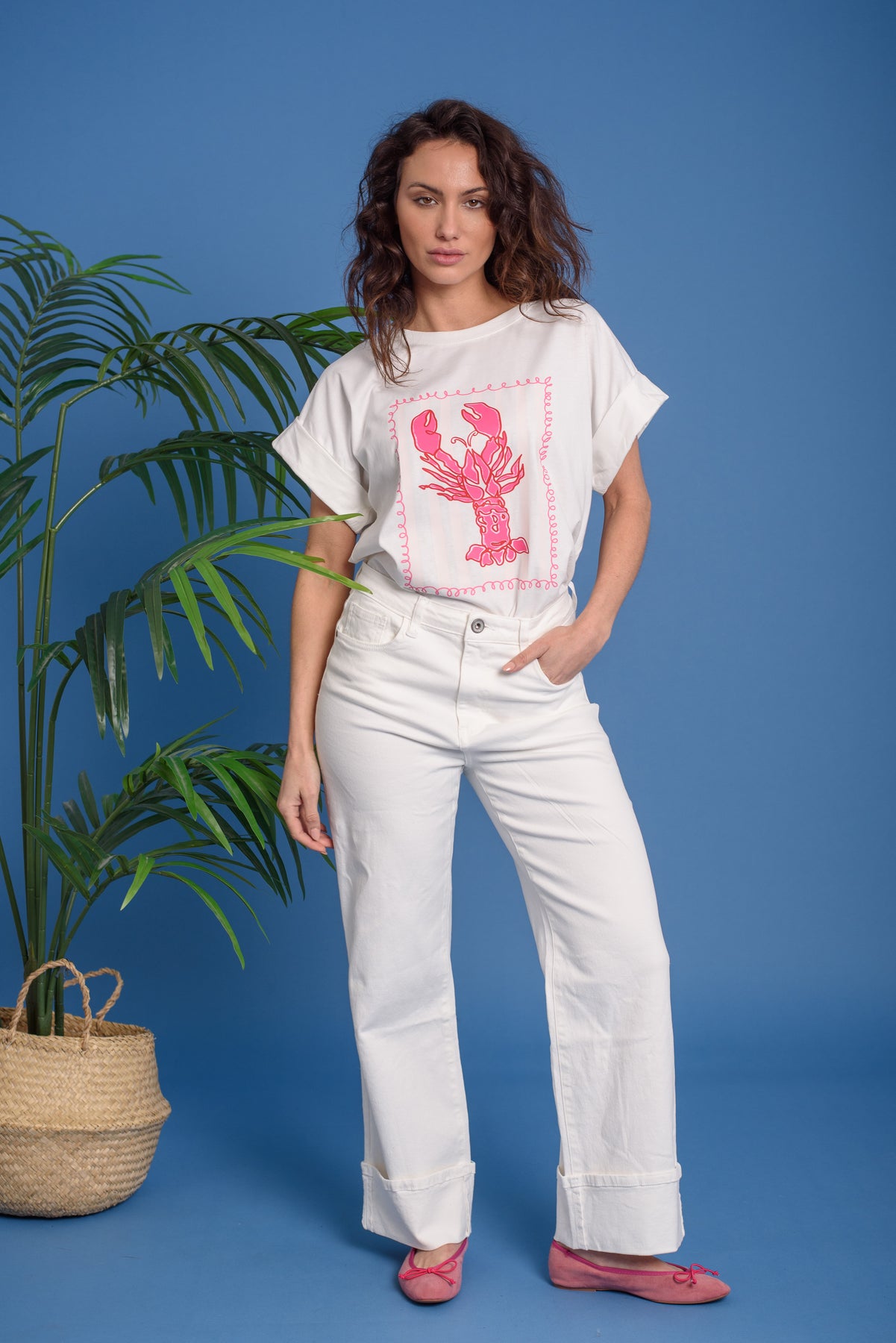 Camiseta manga corta y cuello redondo. Estampada con dibujo sobre el pecho.