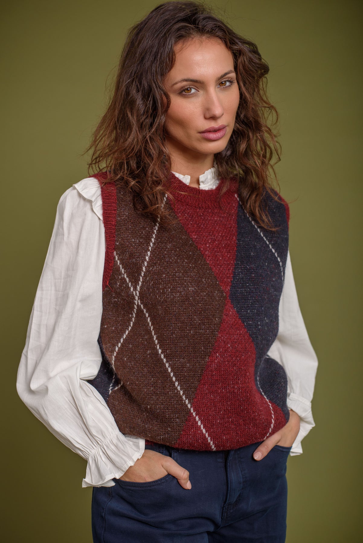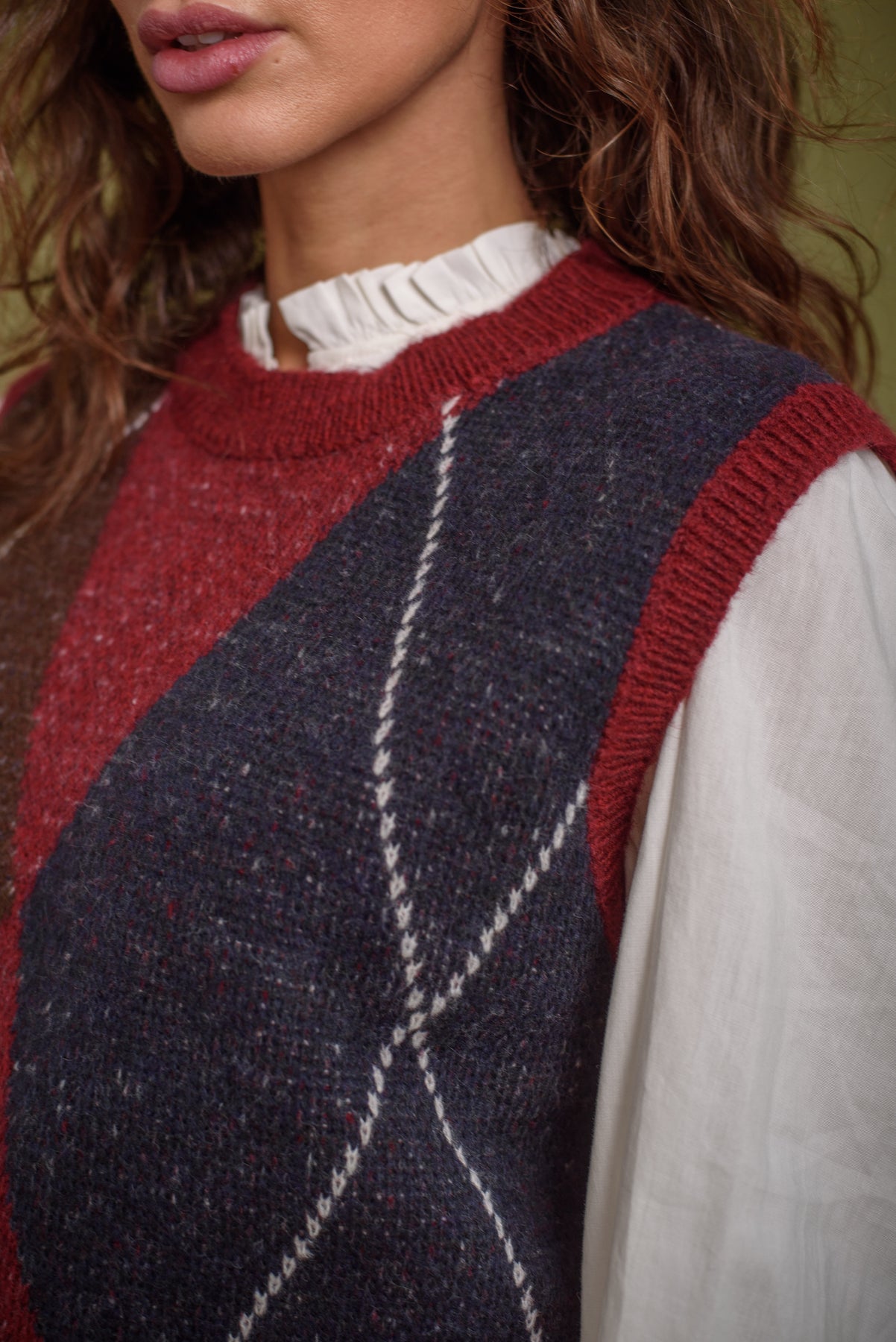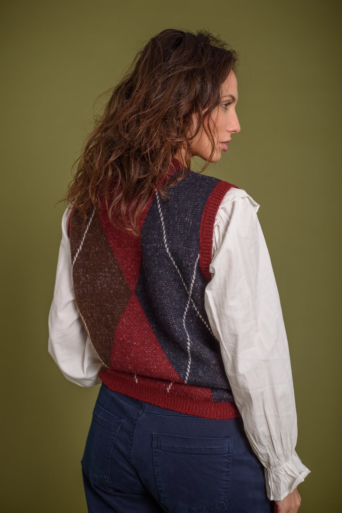 Chaleco estampado rombos. Cuello redondo. Tendencia.