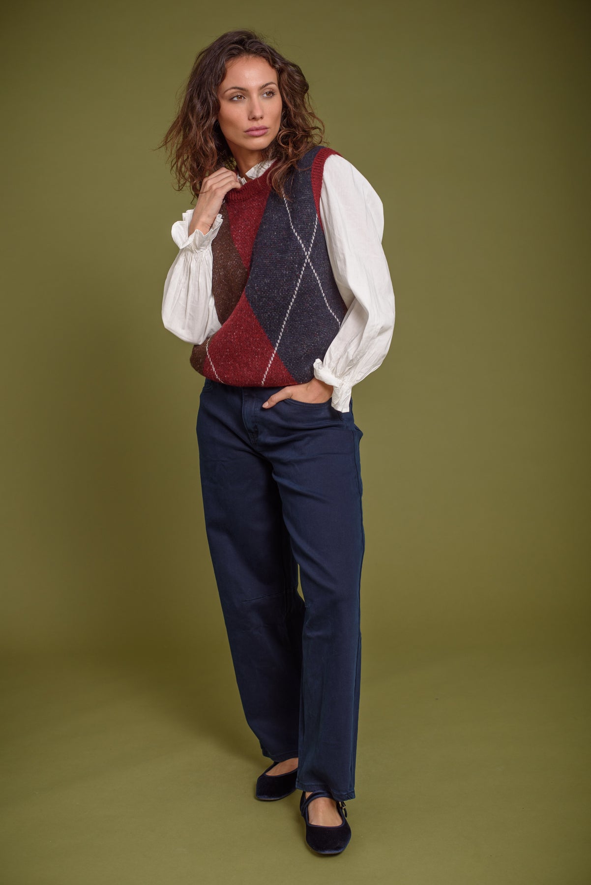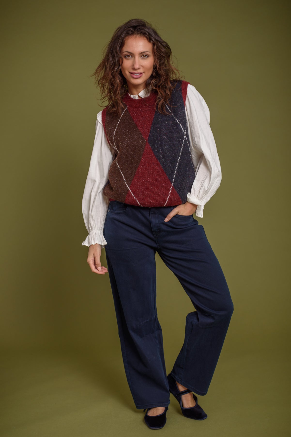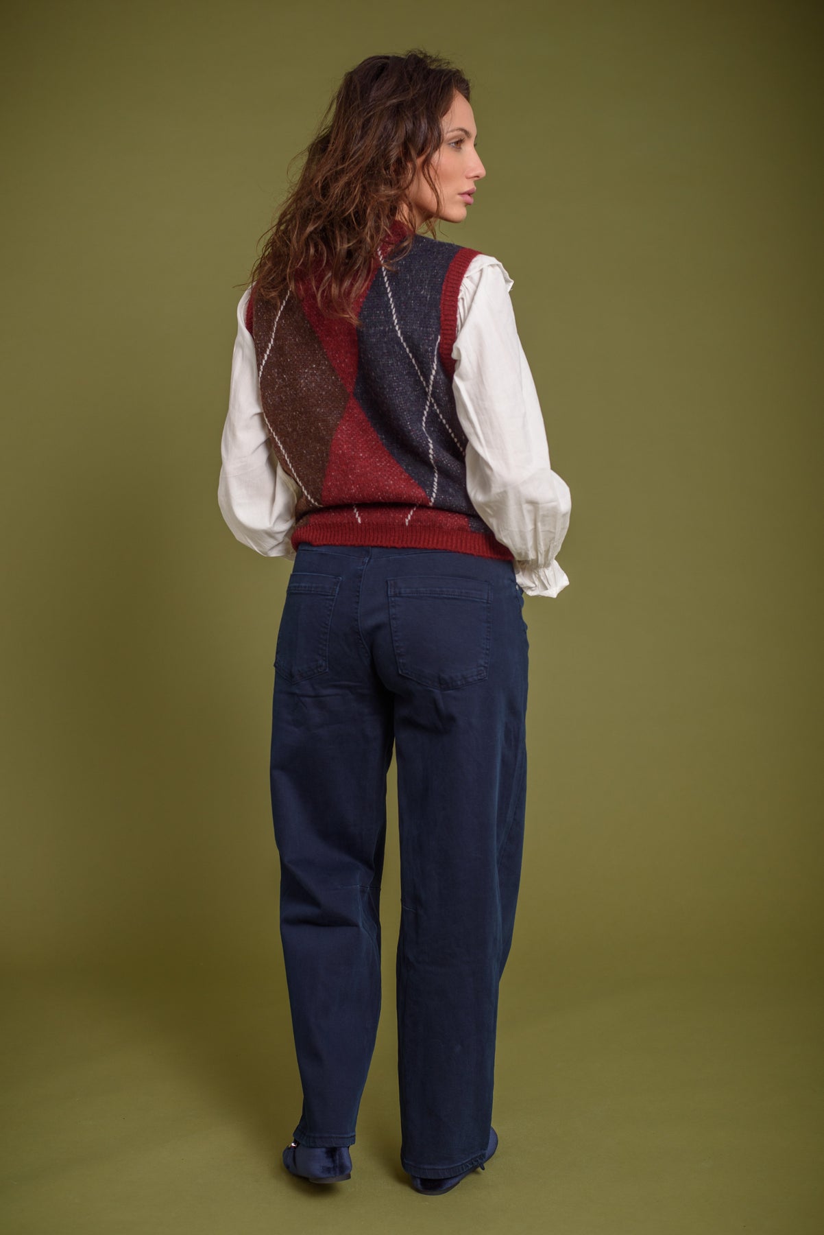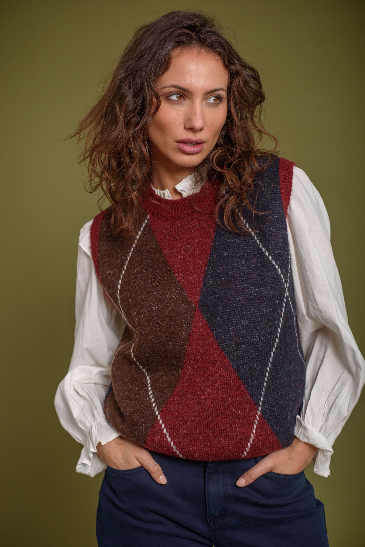 Chaleco estampado rombos. Cuello redondo. Tendencia.