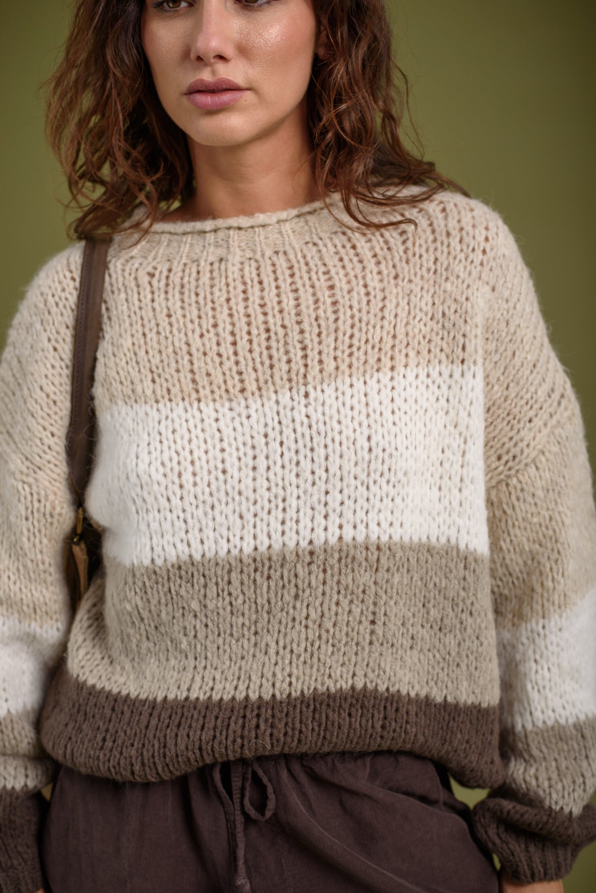 Jersey. Estampado Rayas. Cuello redondo. Manga larga. Super favorecedor y agradable.