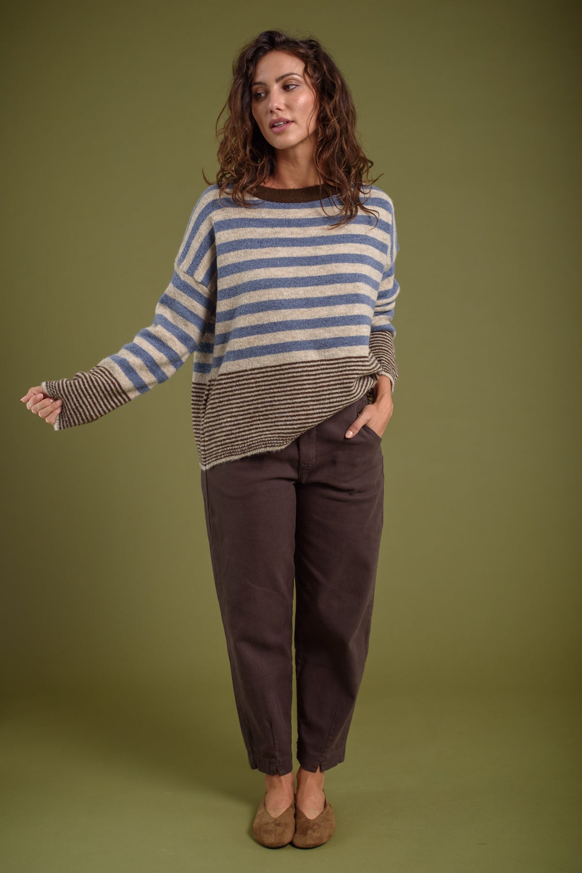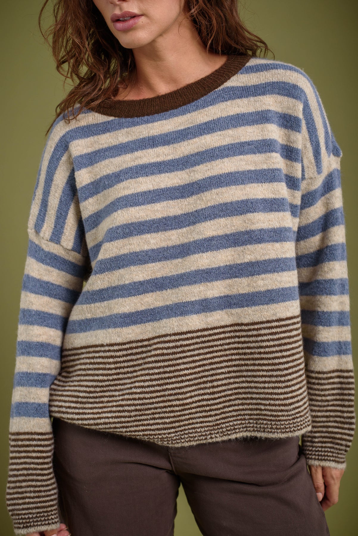 Jersey punto. Cuello redondo. Estampado a rayas.