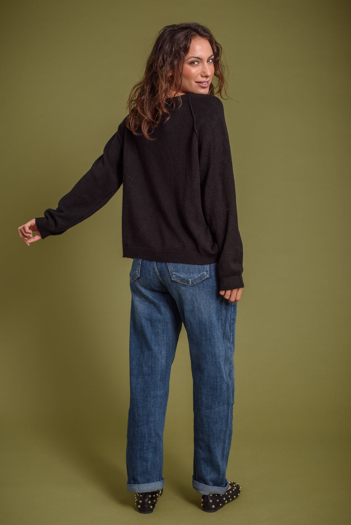 Jersey punto medio, cuello redondo y manga larga. Tejido suave y confortable.