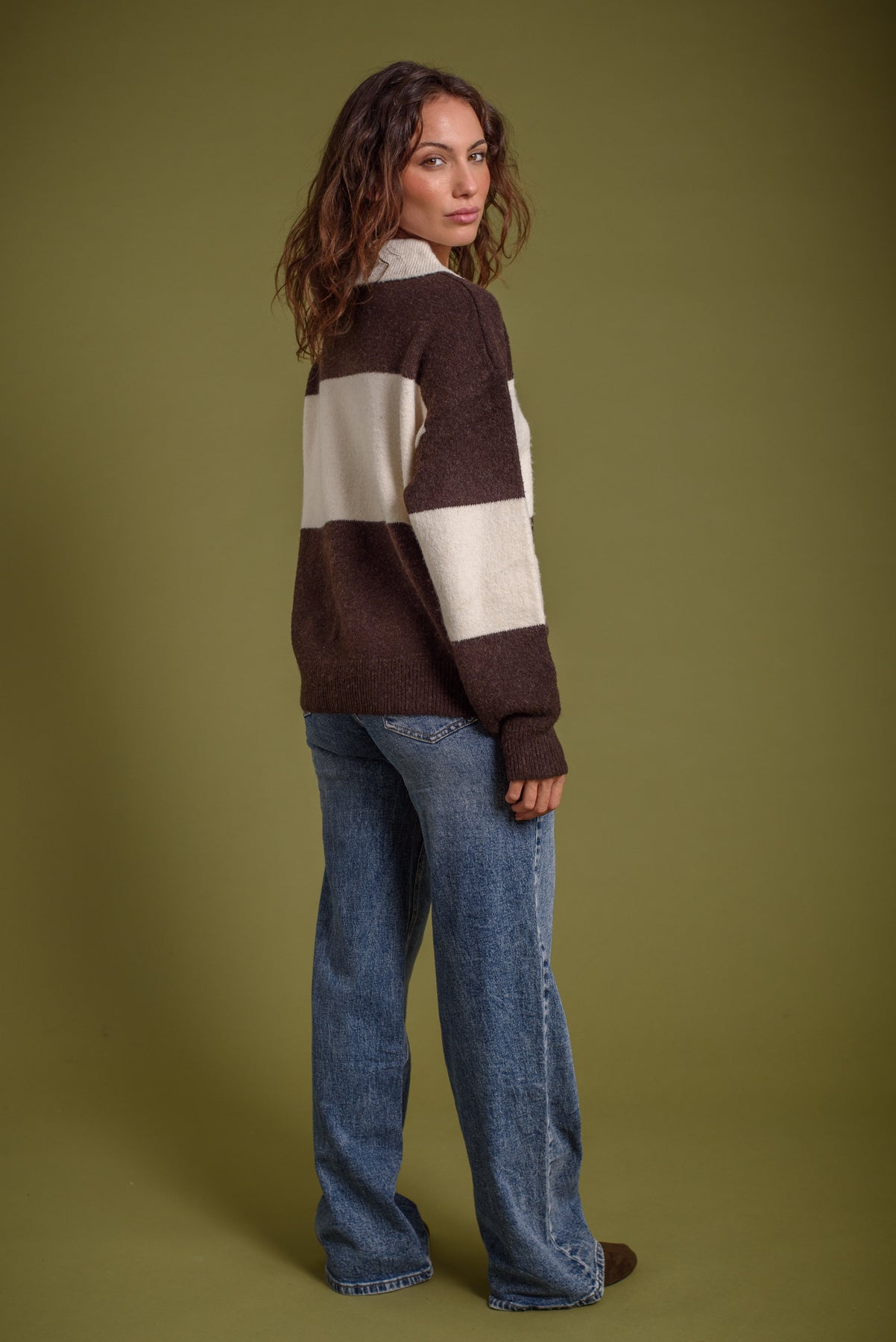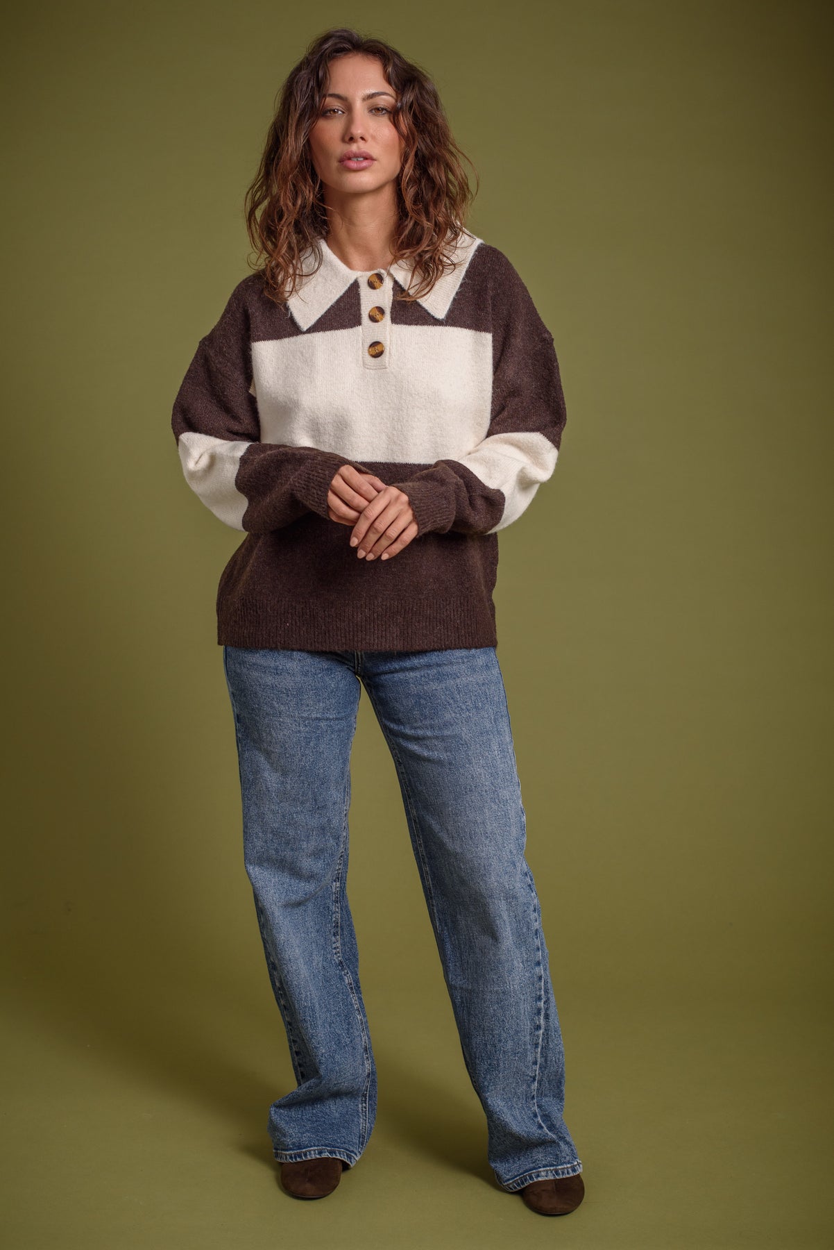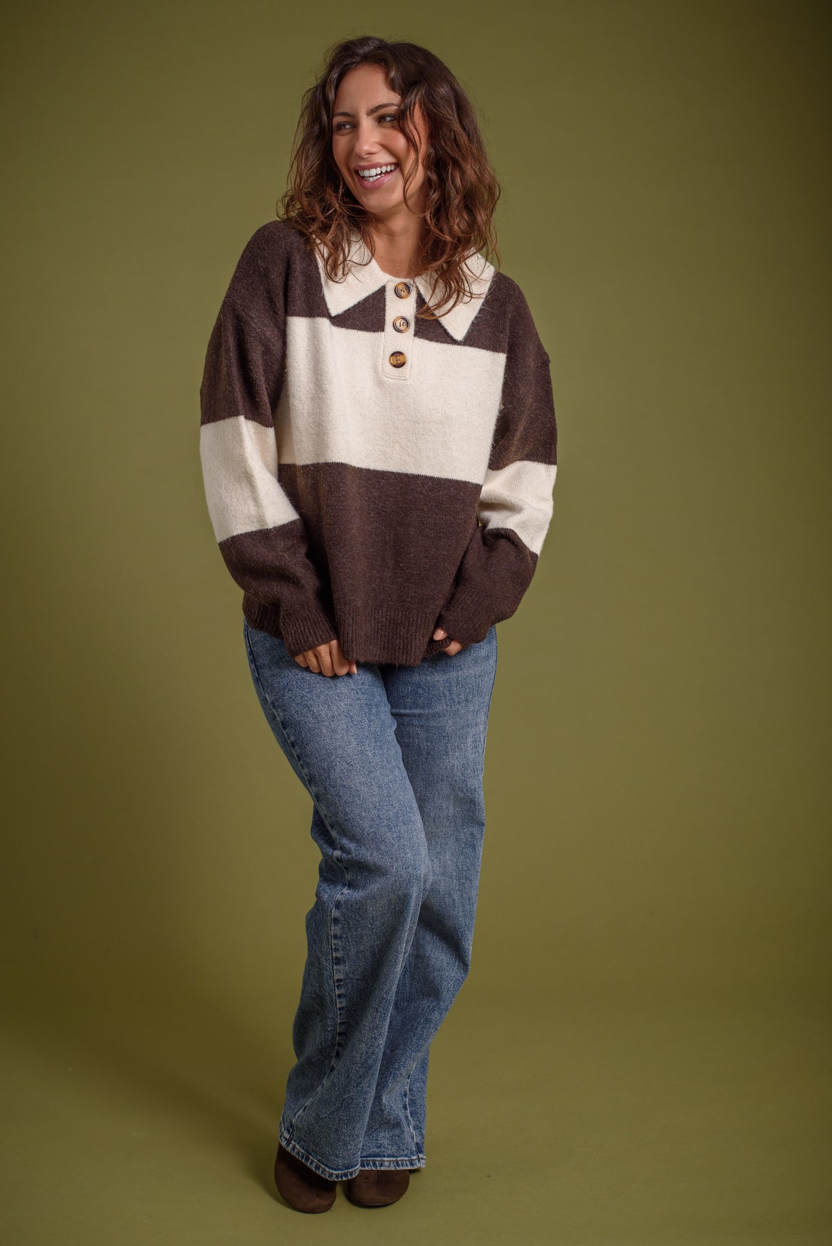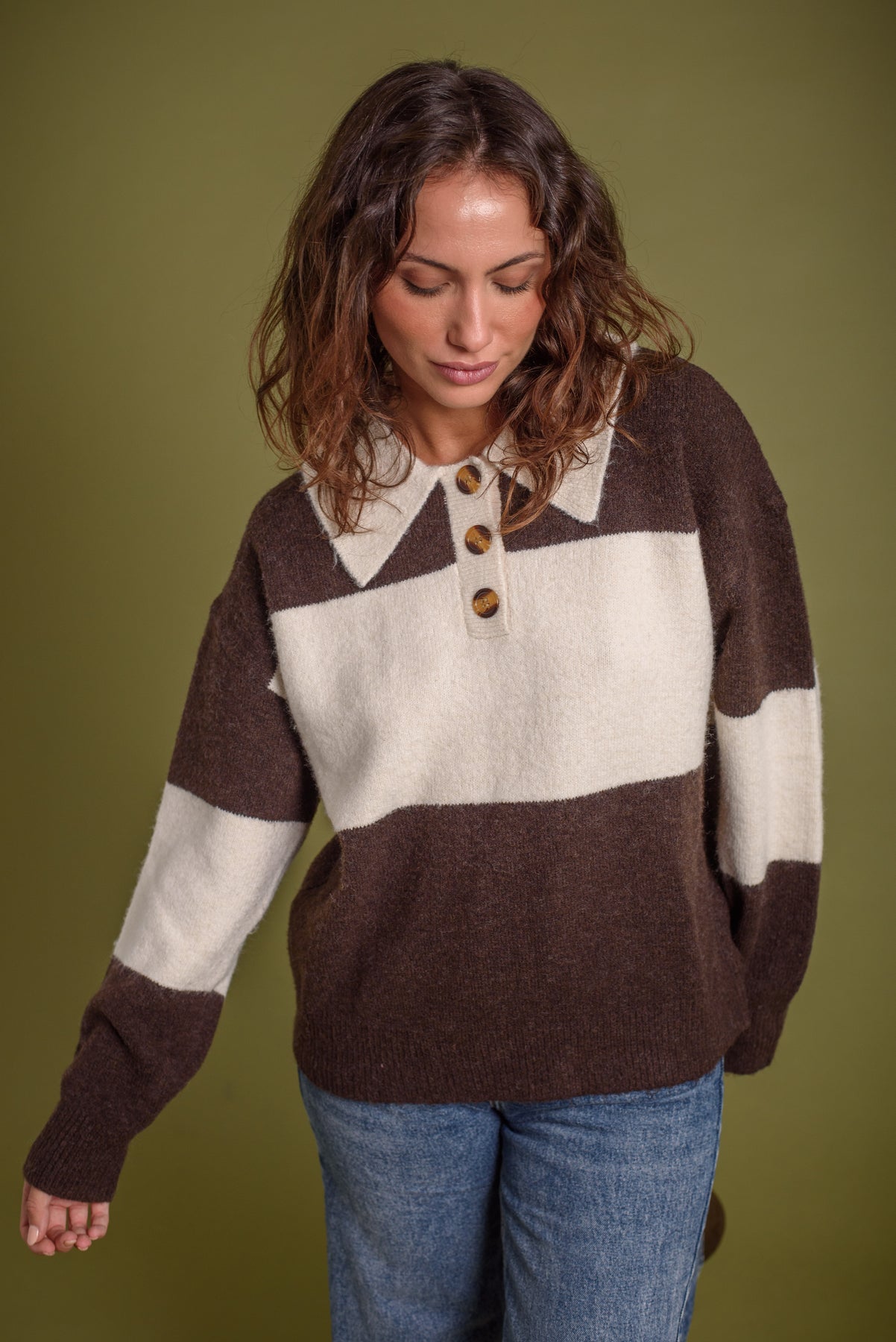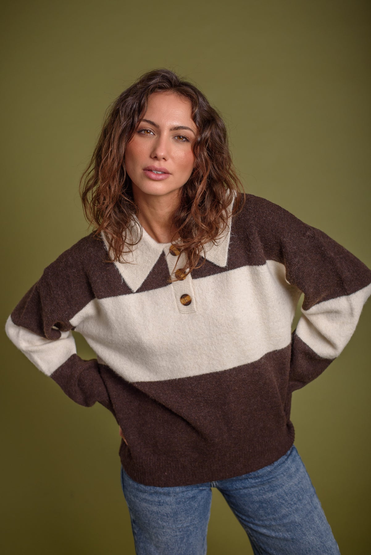 Jersey de corte polo. Cuello y botones. Estampado a rayas.