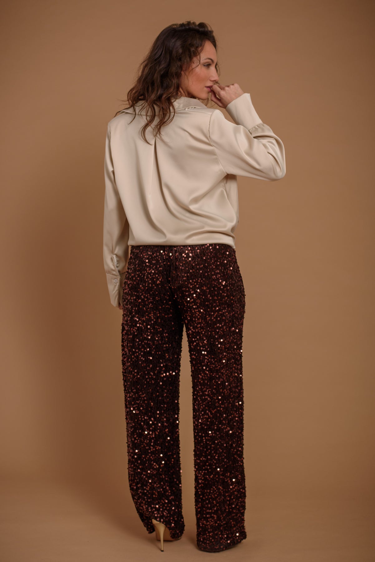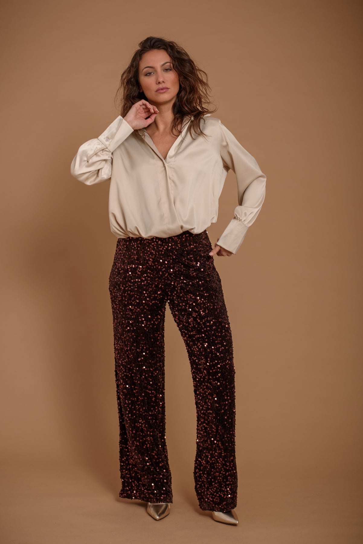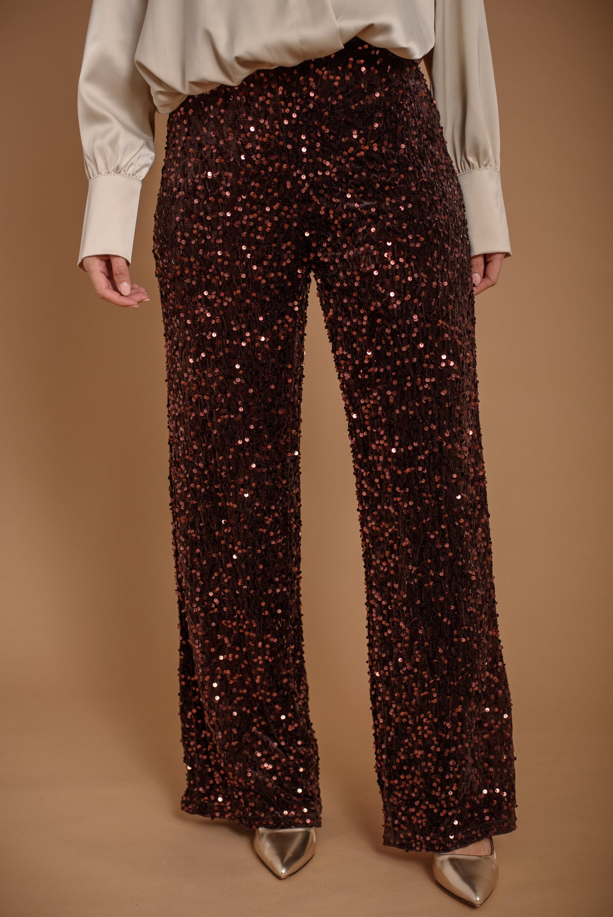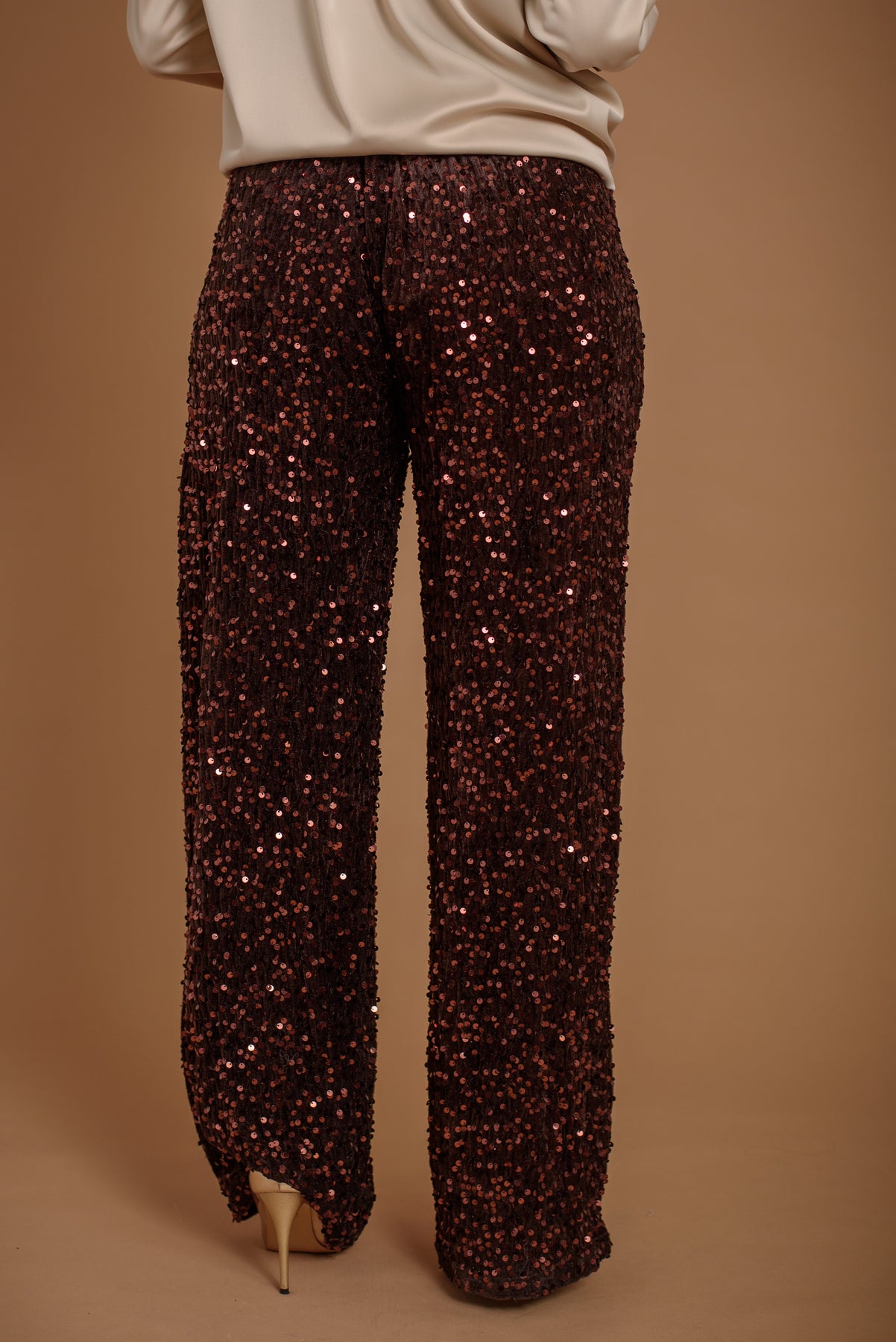 Pantalón terciopelo y lentejuelas. Forro interior. Goma en cintura. Un básico perfecto para tus eventos. Fácil de combinar, muy versátil.