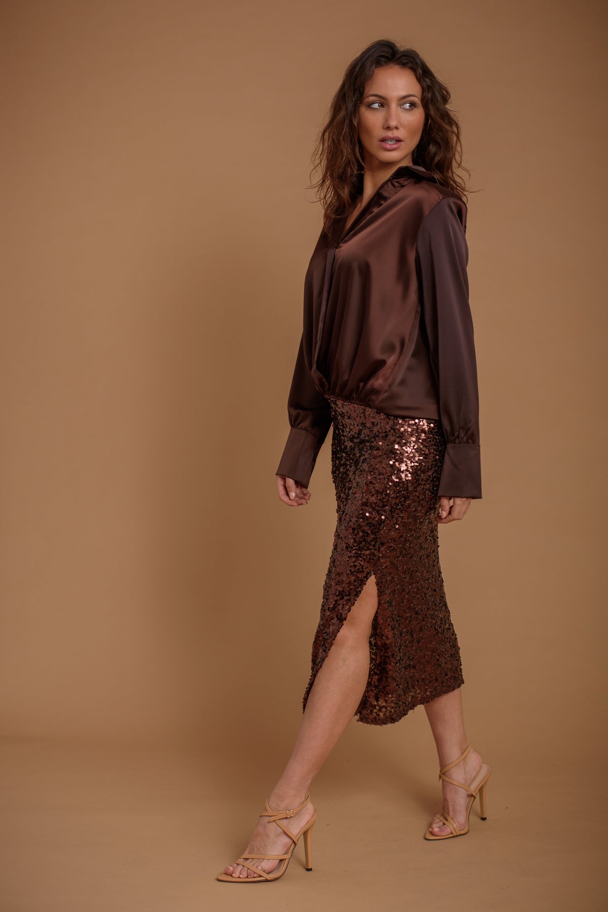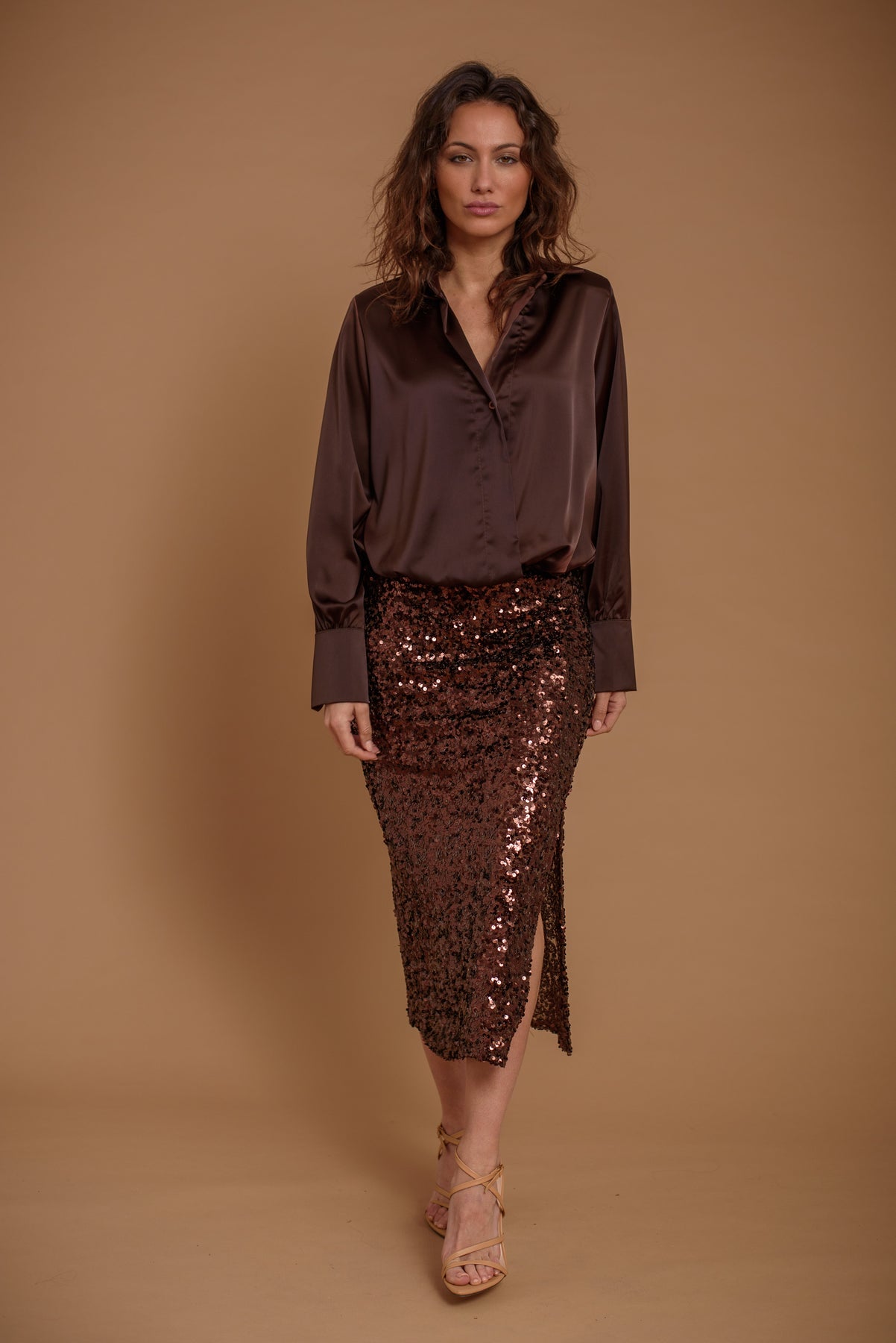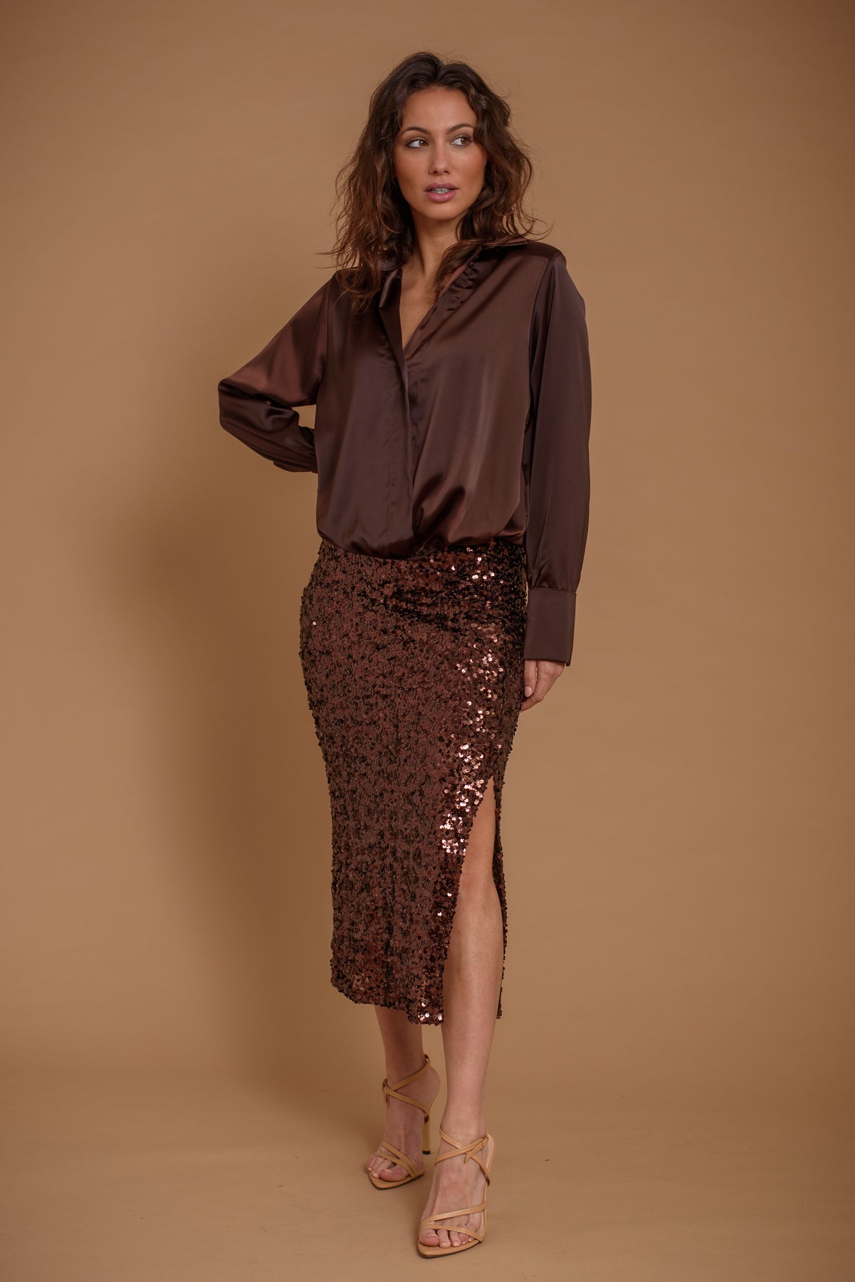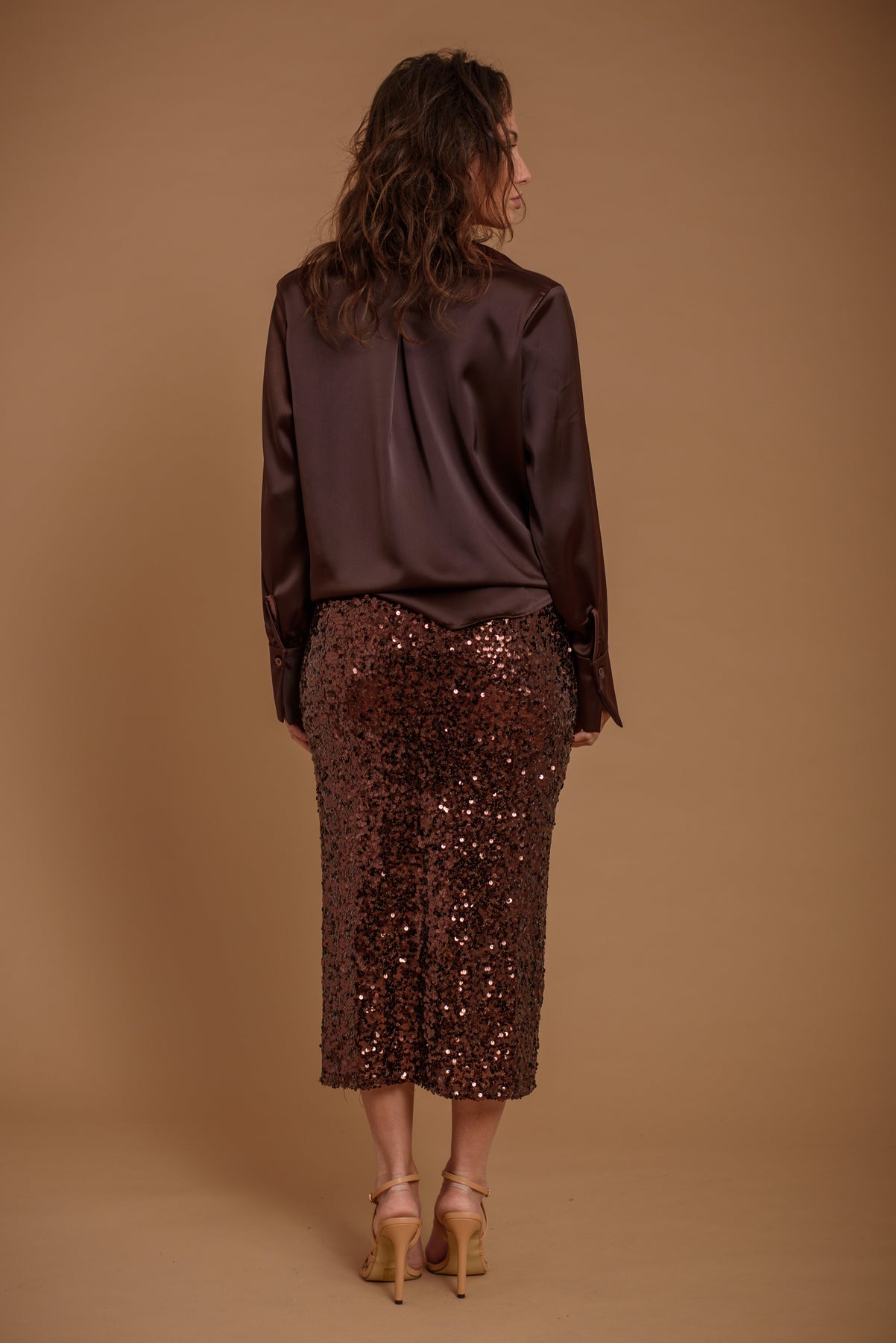 Falda corte recto, largo por debajo de la rodilla. Abertura lateral. Goma en cintura. Favorecedora e ideal como fondo de armario. Versatil y muy combinable.