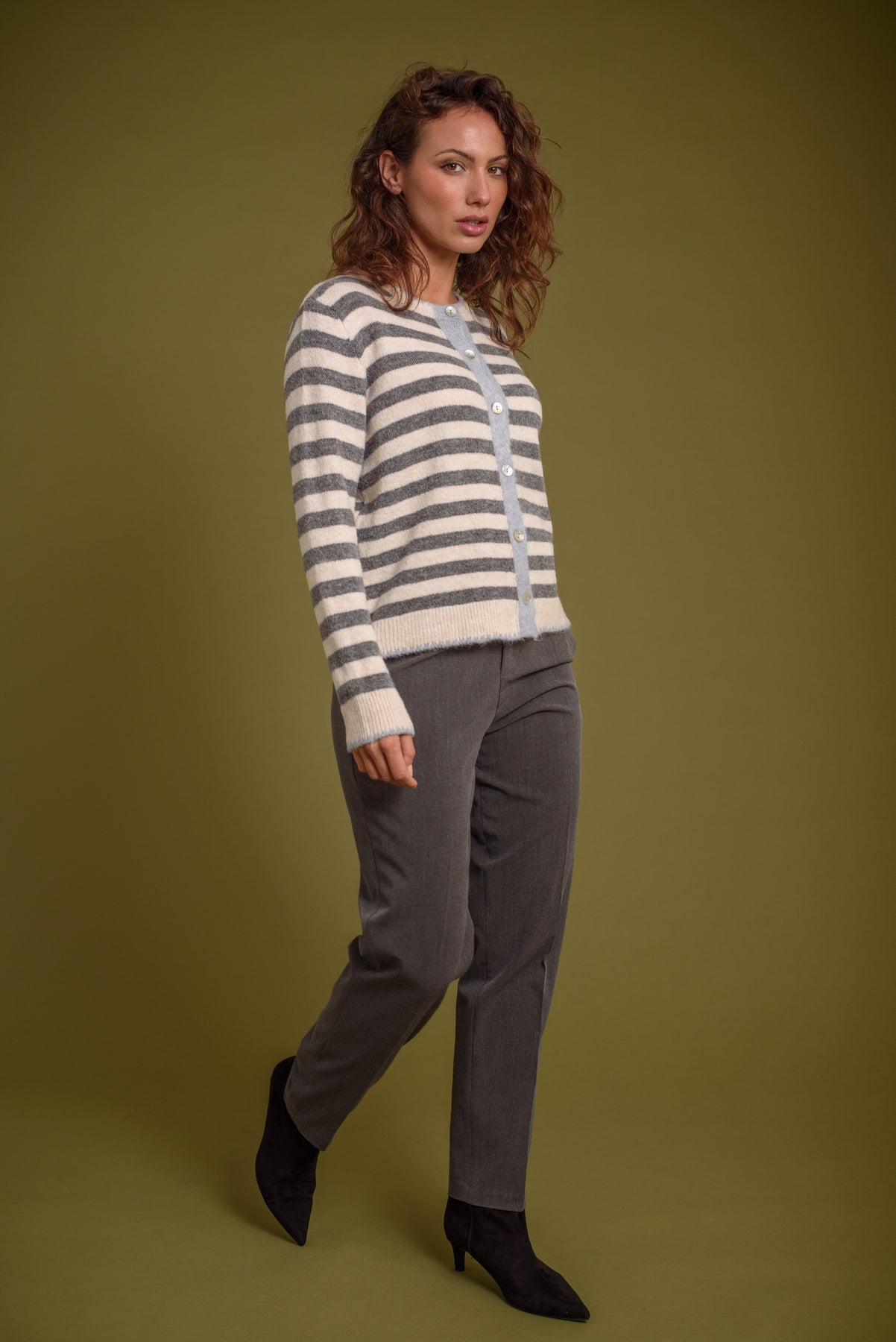 Chaqueta abotonada sobre el pecho. Cuello redondo Estampado a rayas.