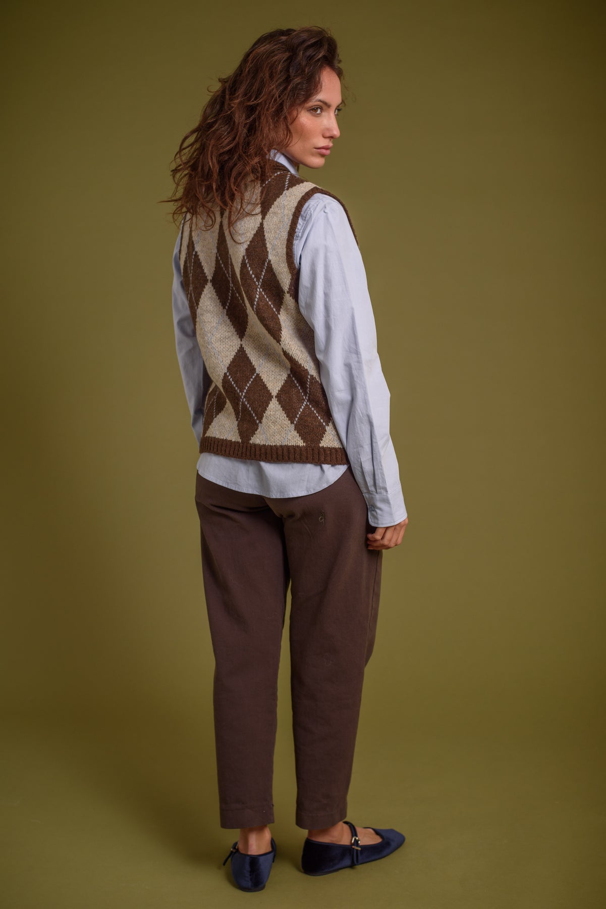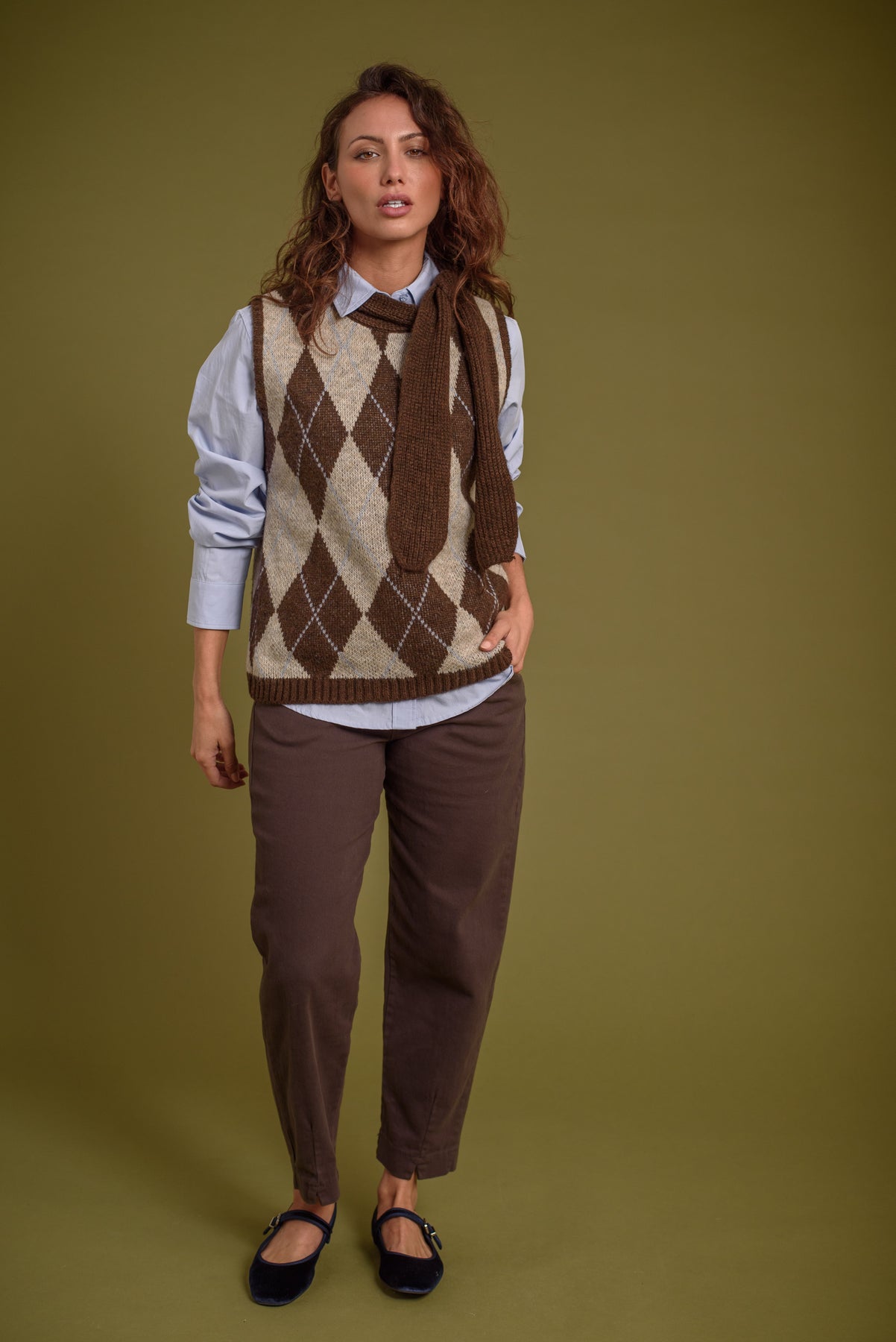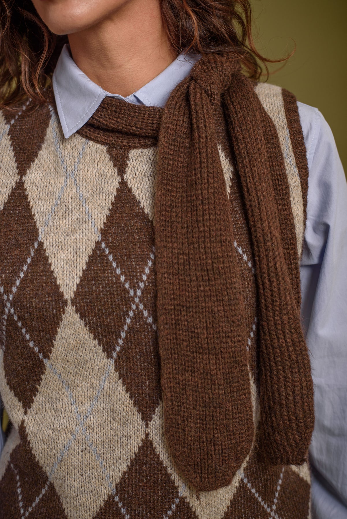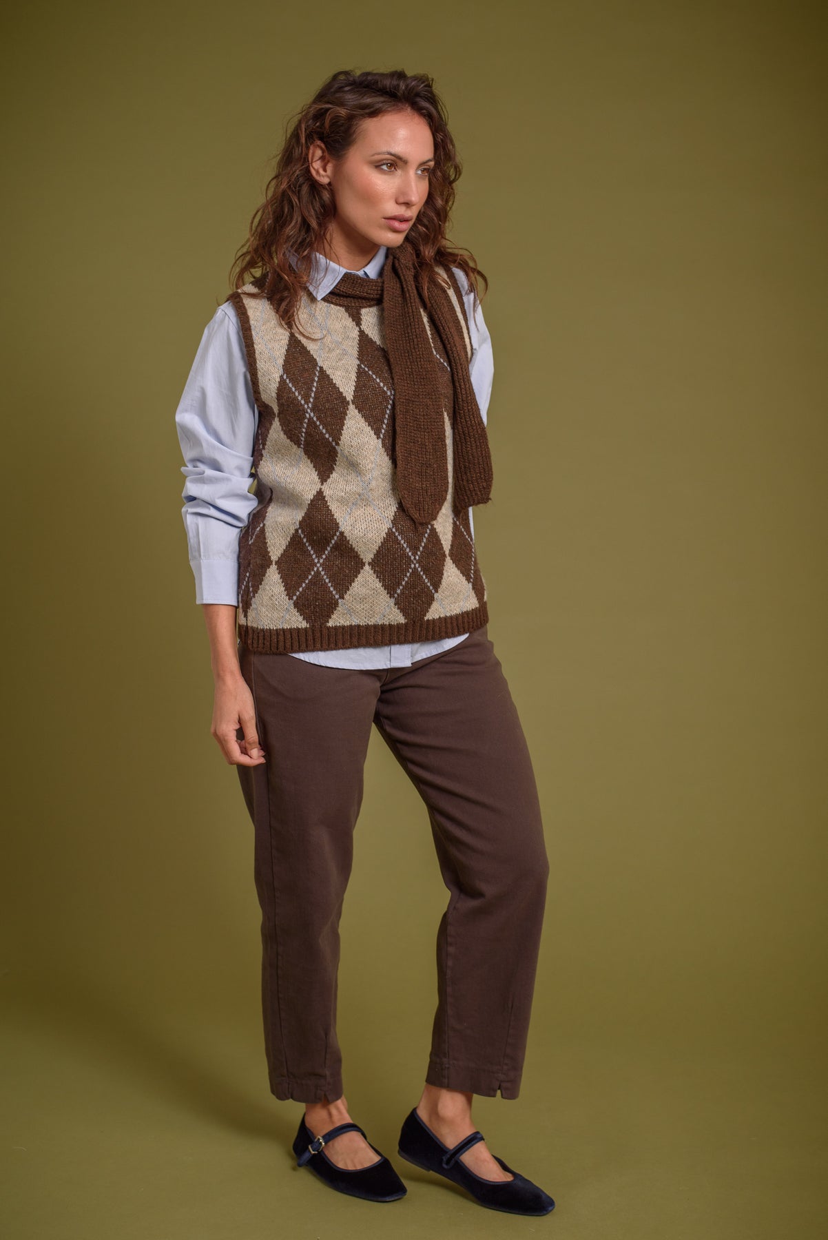 Chaleco estampado rombos. Cuello con detalle de lazada. Favorecedor y con estampado super tendencia.