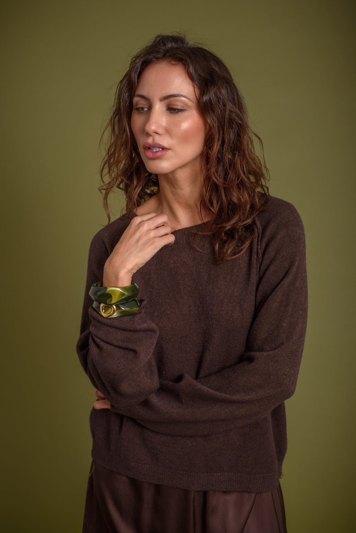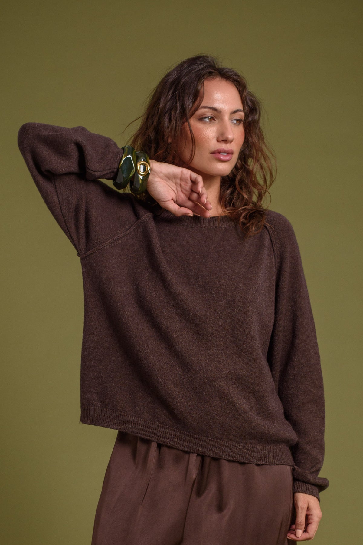 Jersey punto medio, cuello redondo y manga larga. Tejido suave y confortable.