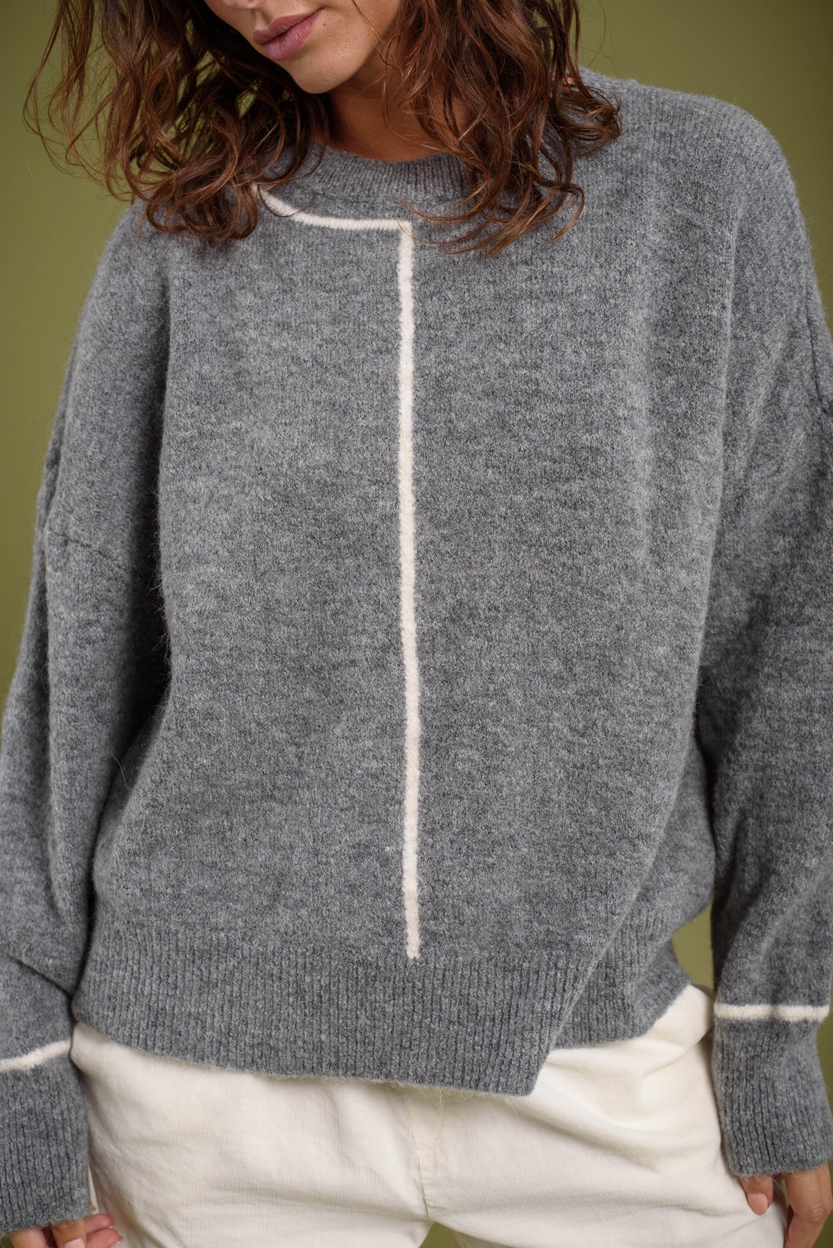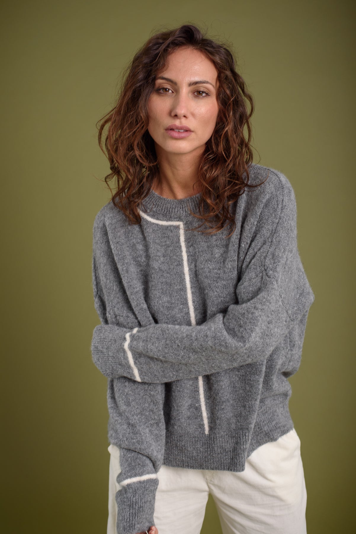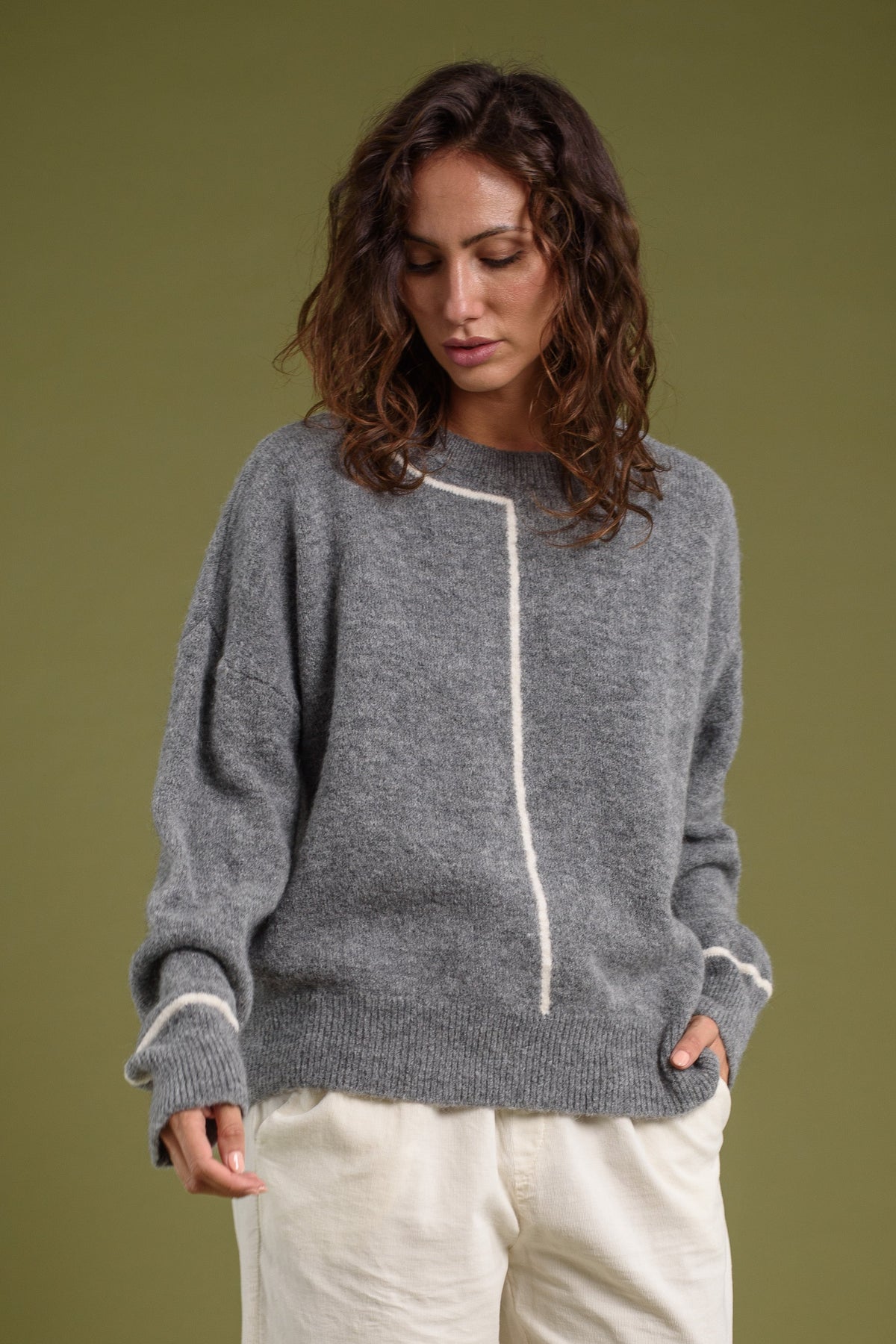 Jersey cuello redondo. Detalle de raya a contraste. Básicos con un toque especial.